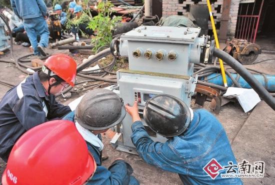 全力抽水,迅速调集功率90千瓦、55千瓦、50千瓦3台水泵抽水,抽水量每小时300立方米。同时,及时从来宾煤矿、羊场煤矿调集救援队,从麒麟区抽调大功率水泵参与救援。目前,又有从麒麟区调来的两台160千瓦的大功率抽水泵投入使用,两台每小时抽水量400立方米。