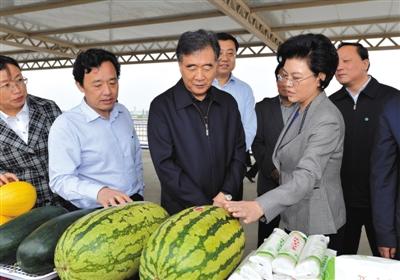 9月22日,中共中央政治局委员、国务院副总理汪洋在宁夏回族自治区领导刘慧等陪同下,来到贺兰县习岗镇,考察了解新平现代设施农业示范园区发展情况。记者 左鸣远 摄