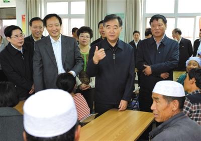 9月22日,中共中央政治局委员、国务院副总理汪洋在宁夏回族自治区领导李建华等陪同下,来到永宁县闽宁镇原隆村,实地了解原隆村扶贫情况,并与群众热情交谈。本报记者左鸣远摄