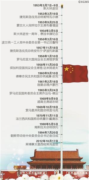 1953年至2012年,天安门广场不少于17次为外国元首和政党领袖降半旗供图/CFP
