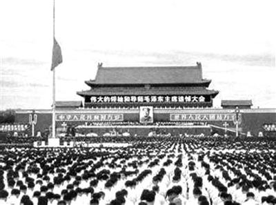 1976年9月9日毛泽东逝世,天安门广场降半旗志哀图片来自《人民画报》