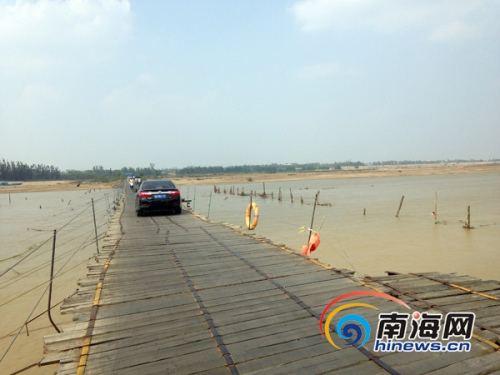 海口定海大桥20余年仍未完工 居民车辆木桥过江(图)