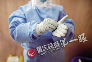 医疗队护理组组长宋彩萍告诉记者,医疗队此次使用的防护设备由2003年抗击非典时期使用的装备改良而成。医护人员每次进入病房,需要穿戴多达11种防护设备,一次穿戴时间超过40分钟。