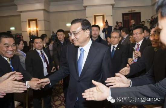 李克强参加中哈企业家委员会会议后,离开会场时与企业家们握手