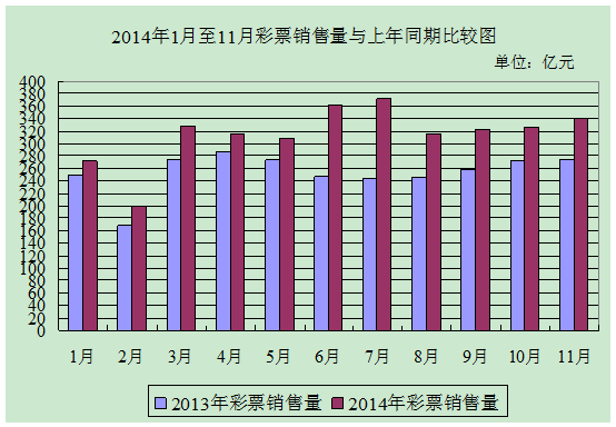 11月份全国共销售彩票341.18亿元 同比增长24.4%