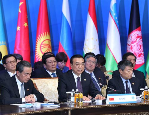 (2014年12月15日,李克强出席上海合作组织成员国政府首脑理事会第十三次会议。新华社记者庞兴雷摄。)