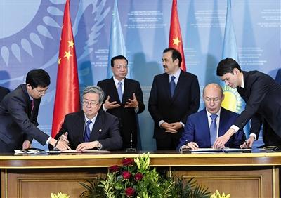 14日下午,李克强同哈萨克斯坦总理马西莫夫出席签字仪式,共同签署中哈总理定期会晤联合公报,并见证双方边境合作、矿产开发、本币互换、核能等领域合作文件的签署。