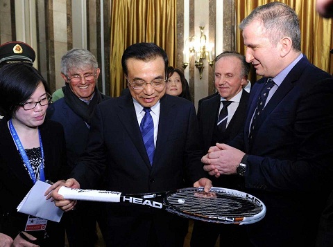 李克强获赠小德球拍 称家庭作业多只能电视看网球
