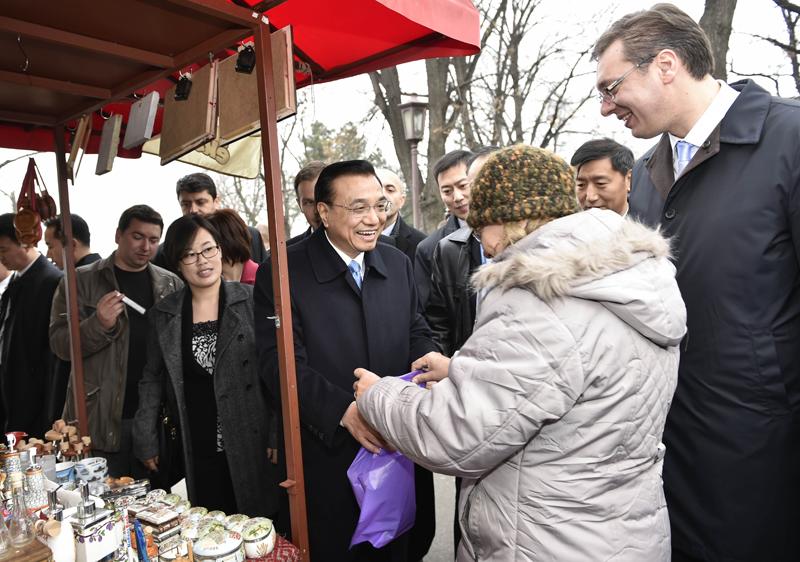 李克强走访贝尔格莱德的集市。中新社 刘震 摄