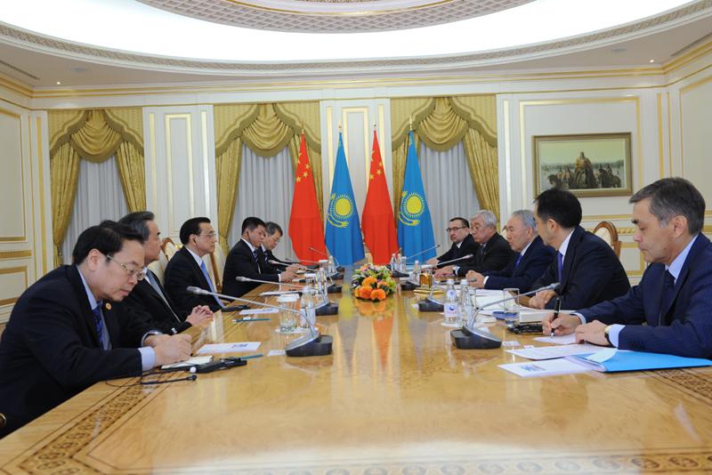李克强会见哈萨克斯坦总统纳扎尔巴耶夫。新华社 饶爱民 摄