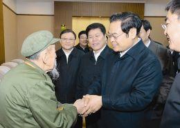 12月20日,省委书记王儒林在武乡县八路军太行纪念馆,亲切询问了90岁高龄老八路魏太合的身体和生活情况。本报记者李联军摄