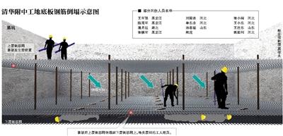 上述工程技术人士表示,二层水平结构的钢筋将架子压塌时,有钢筋工正在做竖向结构的钢筋绑扎,这并不符合安全施工规范,“应通过现场管理尽量避免此类交叉作业,正常的施工程序应该是先完成竖向的结构,包括加固钢筋箍筋,再铺设上面的横向钢筋。”