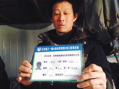 一个月前,两人一同前往河南安阳的诚成劳务公司应聘,这家公司承包了清华附中的体育馆工程,二人就被分到工地上干活。