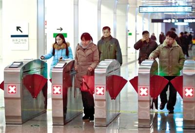昨日晚高峰,朝阳门地铁站,乘客有序刷卡出站。票价调整后,轨道交通日客流下降约80万人次。实习生 彭子洋 摄