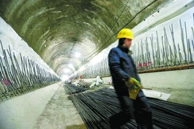 昨天,工作人员在地铁14号线蒲黄榆区间内进行隧道施工。将于今年底通车试运营的地铁14号线中段目前已完成9座车站的主体结构施工。记者 孙戉 摄