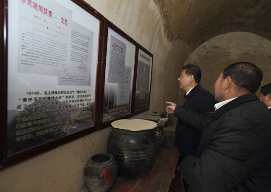不知不觉,已过了晌午。在当年老支书,也是习近平入党介绍人梁玉明家,主人热情邀请习近平留下吃顿便饭。习近平愉快答应了。热气腾腾的炖羊肉、荞麦饸饹、油馍馍、蒸南瓜、麻汤饭……乡亲们和总书记忆苦思甜,回忆着吃糠咽菜的日子。