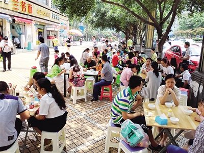 同样,小区门外的沁园蛋糕店内,也坐满吃蛋糕喝饮料的顾客。