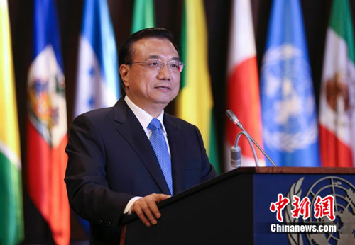 李克强总理25日在联合国拉美经委会发表演讲。中新社记者 刘震 摄