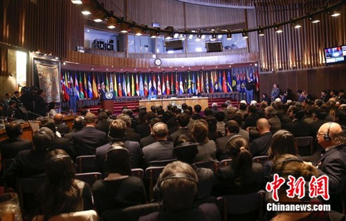 李克强总理25日在联合国拉美经委会发表演讲。中新社记者 刘震 摄