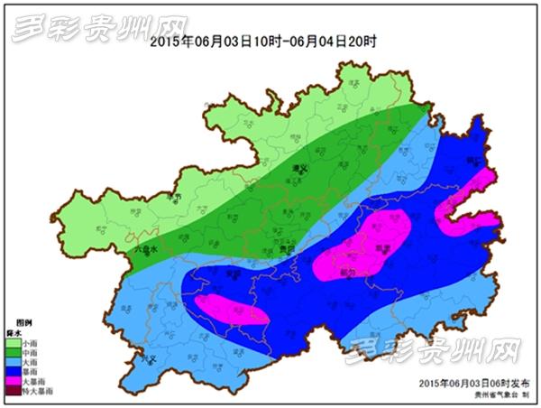 6月3日10时至4日20时全省降雨落区预报图(贵州省气象台 供图)