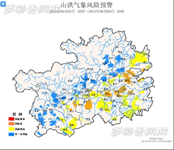 6月3日10时至4日20时全省山洪气象风险预警图(贵州省气象台 供图)