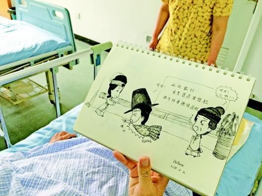 2日下午,孙鹏飞在病房外摔倒,他用Q图记录下了这一幕。