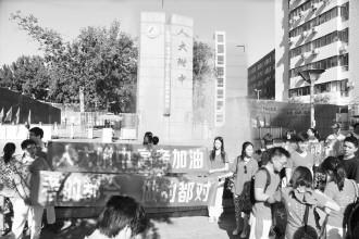 图为中国人民大学附属中学考点门口。
