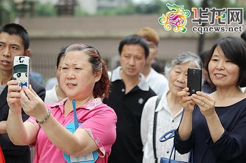 不少家长拿起手机,记录考生走出考场的一幕。记者 李裕锟 摄