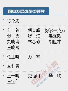 据中国经济网部委人物库资料显示,马欣,1956年8月生,此前担任国家发改委国际合作司司长;王宝伟,1955年9月生,此前担任国家发改委经贸司司长。此次调整后,发改委现共有副秘书长四人,分别是:王一鸣、范恒山、马欣、王宝伟。(彭博)