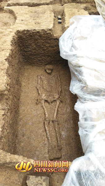 “根据断层来看,这具人骨应该是新石器时代。”四川省文物考古研究院常驻三星堆工作人员冉宏林介绍,旁边的沟槽可能是墓主的房屋所在地,也就是说墓葬和生前所住房屋是在一起的。