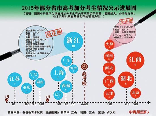 此外,有的省份公示信息还存在“漏网之鱼”,湖南的少数民族加分考生名单中,张家界市并未注明考生学校,而仅有区县招生办名称。而该省其他地市均有考生学校的信息。(实习生 田荣娟 江山 本报记者 卢义杰)