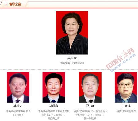 山东省委统战部官方网站“部领导介绍”栏目近日进行更新,据最新名单显示,吴翠云已任山东省委统战部部长。