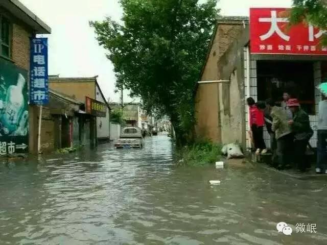 原中医院对面的巷口,水已经快淹过膝盖了