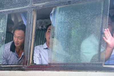 昨晚9点50分左右,守在镇政府内的家属开始散去。多名家属称,他们收到通知,腾冲县的获释人员将被直接送回所在村镇,不需在猴桥镇政府等候。几乎与此同时,在猴桥口岸内,10多名获释伐木工登上一辆大巴车,前后各有一辆小车,往猴桥镇方向开去。晚上10点15分左右,又有4辆大巴车驶出,开往猴桥镇。