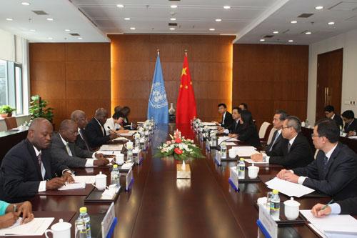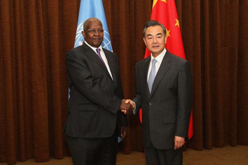 2015年7月31日,外交部长王毅在北京与来华访问的第69届联大主席、乌干达外长库泰萨举行会谈。