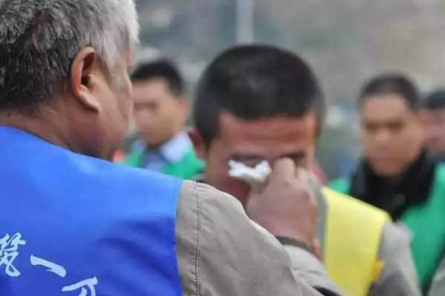 (一位父亲为少年犯儿子擦干眼泪,年纪并不算大的他为了儿子已经愁白了发。来源:齐鲁网)