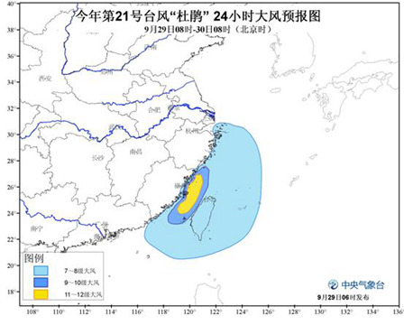 昨天(28日)17时50分前后,今年第21号台风“杜鹃”在台湾宜兰沿海登陆,沿海地区风大雨强。预计,今天上午,“杜鹃”将在福建福清到晋江一带沿海登陆。受其影响,今明天,浙江、福建、台湾等地部分地区有大雨或暴雨,局地有特大暴雨。同时,由于“杜鹃”登陆期间正值天文大潮,浙江、福建沿海地区将会出现风暴潮。