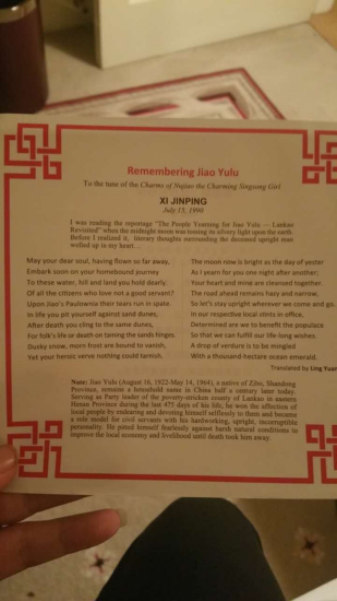 习近平1990年写下这首词时任中共福州市委书记。2014年3月,已是中国最高领导人的习近平到河南兰考县,有感于焦裕禄为人民服务之精神,重诵此词。