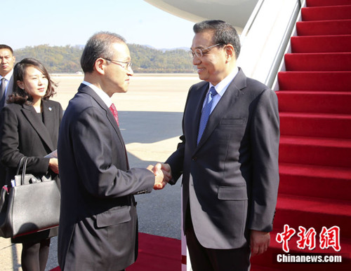 中新网首尔10月31日电(记者 郭金超) 当地时间10月31日11时50分,李克强总理乘专机抵达首尔城南机场,开始对韩国进行正式访问。韩国政府高级官员在机场迎候。