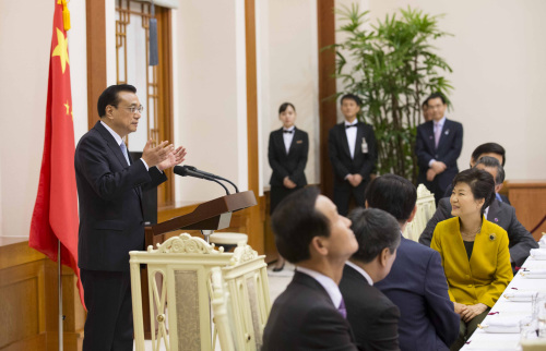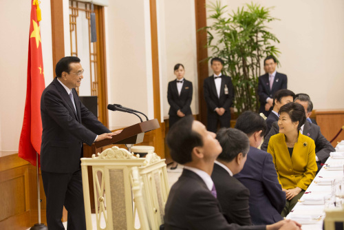 中新网首尔10月31日电(记者 郭金超)李克强总理31日出席韩国总统朴瑾惠举行的欢迎晚宴时说:朴槿惠总统听说我昨天夜里刚从外地返回北京,今天一早就来访问韩国,问我是否感到很累。我说,我感到很愉快,因为来到韩国有一种到邻居家串门聊天的亲切感。