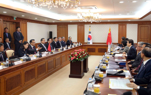中新网首尔11月2日电 (记者 郭金超)当地时间2日上午,李克强总理在韩国政府大楼会见韩国国务总理黄教安。李克强说,我此次访韩实现了两国关系“百尺竿头,更进一步”。希望今后中韩要进一步加强各领域务实合作,推动两国关系百尺竿头更进两步三步。