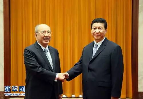 2013年6月13日,中共中央总书记习近平在人民大会堂会见了中国国民党荣誉主席吴伯雄和他率领的中国国民党访问团全体成员。