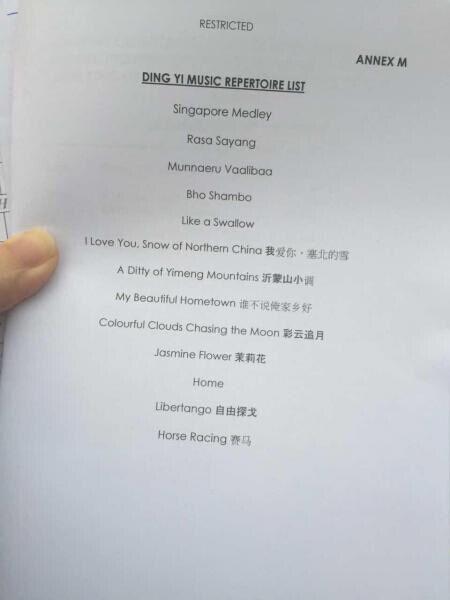 负责在国宴上演奏的是鼎艺团,将以由四首南洋风的民族歌曲如《Rasa Sayang》、《Munnaeru Vaalibaa》、《Bho Shambo》和《Like a Swallow》所组成的组曲开始。