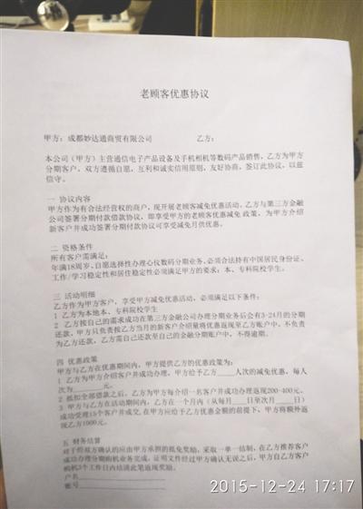 据悉,成都已经有多个高校里风靡这种免费拿iPhone的兼职,一些学生还和商家签了协议。成都商报记者暗访多日,揭开了分期购机的“免费”真相。
