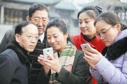 1、太原晋商博物馆的工作人员围在一起,看手机上拍摄的总理的照片