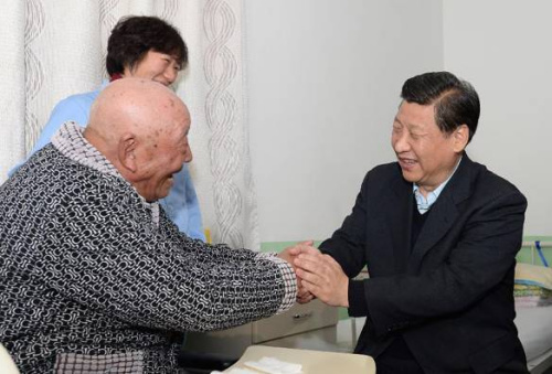 图为:2014年元旦前夕,习近平12月28日深入北京市供热企业和敬老院,考察民生工作,看望一线职工,慰问老年群众,向全国一线职工表示慰问,向全国老年群众致以祝福。