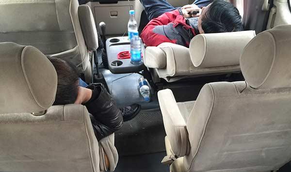 【14:21】经过一中午的紧张工作,利用间隙时间,检查组工作人员抓紧在车上打个盹。