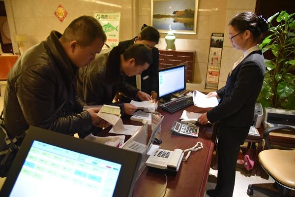 【12:42】工作人员在长沙市某高档餐厅前台检查发票和订餐等情况。