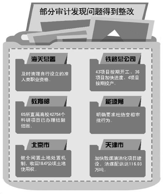 审计署今天(24日)发布的2015年12月《稳增长促改革调结构惠民生防风险政策措施贯彻落实跟踪审计结果公告》(以下简称公告)透露,2015年,围绕稳增长促改革调结构惠民生防风险政策措施贯彻落实,审计署共对29个中央部门、7户中央企业进行了跟踪审计;而12月的审计则是对2015年1月至11月审计查出问题的整改情况进行的跟踪核查。