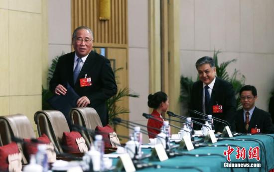 3月7日,全国政协十二届四次会议召开记者会。此次记者会的主题是“绿色发展保护生态环境”。全国政协委员解振华(左一)、秦大河、吴晓青、胡存智、白岩松出席记者会并就相关问题回答记者提问。中新社记者 汤彦俊 摄